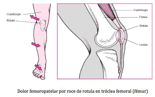 El dolor o síndrome femoropatelar se manifiesta como dolor en la cara anterior de la rodilla y se calcula que genera el 50% de todos los dolores de la rodilla. Aunque no se sabe bien el origen de este dolor, se considera que es generado por la irritación del tejido sinovial que envuelve a la rótula.